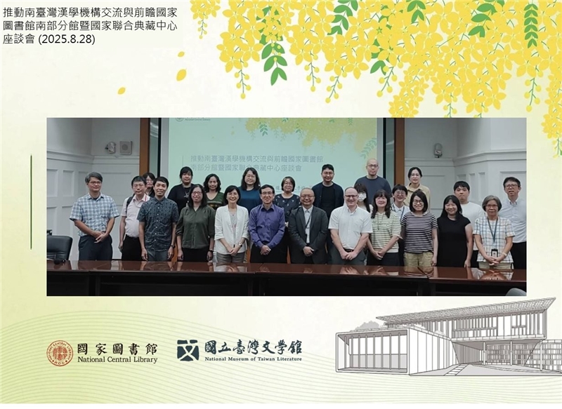 To gather insights from the academic community for the planning of future operations, formulation of development strategies, creation of an international academic platform, and promotion of collaboration among libraries and research institutions in southern Taiwan—as well as to encourage foreign scholars to conduct research in the region—the National Central Library, in collaboration with the National Museum of Taiwan Literature, held the Symposium on Promoting Sinological Collaboration in Southern Taiwan and the Vision for the Southern Branch of the National Central Library and the National Repository Library on August 28, 2025.
